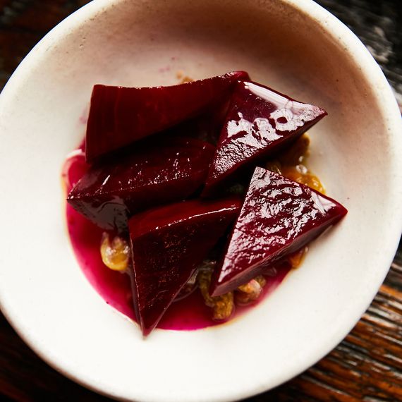 At June — the long-standing wine bar in Cobble Hill where Moya took command of the kitchen just about two months ago — the dish, which changes a bit night to night, might be described in dead-simple terms: “Fluke, juniper, Tropea onion,” for example. The kitchen cures the fish quickly, in about 15 minutes. It’s diced and dressed with juniper oil and lemon juice. It’s finished with some pickled shallots and shavings of oversize Italian red onions. You eat a spoonful and sort of want a bagel, but instead of a bagel, there are slices of sourdough from ACQ Bread, down the street from June. “You don’t need fireworks,” says Moya. “You can eat the fish and enjoy it for what it is.” And what it is is just unexpected enough — subtle but with a clear point of view. Everything about this particular fluke underpromises and overdelivers.