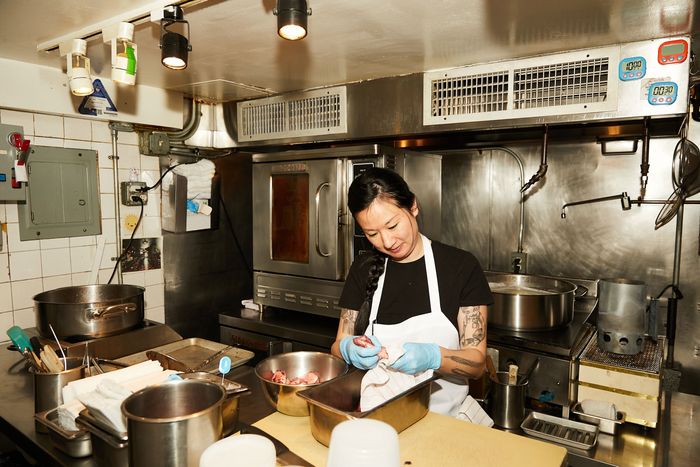 When I ask Fan about this approach, she tells me something I rarely hear back-of-the-house workers say: “It’s a really positive environment — I’m not going to lie.” It’s almost shocking how reasonable and levelheaded it all sounds. “We’re all there to make nice food to go with tasty wine,” she says. “People like it, and that makes me happy. I’m not stressing myself out about anything else.”