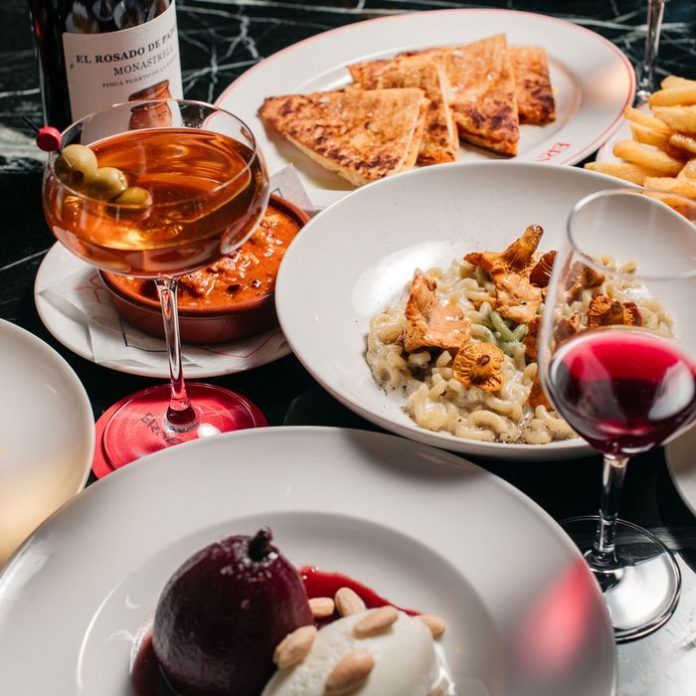 “This is really rich cooking,” one of my daughters said as we pondered the “Platos Principales” portion of our meal, much of which seemed to be the kind of thing you’d want to be eating outdoors in the mountains around San Sebastián, with a hint of wood smoke in the air and winter setting in. In fairness, the food at Ernesto’s is also classic, heavily flavored big-city restaurant cooking, which takes some getting used to after a steady diet of sourdough and pots of home-cooked beans. Ernesto’s name is a nod to that grandfather of he-man cooking, Ernest Hemingway, who probably would have enjoyed our portion of baby elbow macaroni, which Bartlow tops with chanterelle mushrooms and tosses, cacio e pepe style, with plenty of black pepper, and the bountiful pork collar, which is cut in tender ruby-colored slices and garnished with a small mountain of patatas fritas and pork drippings sweetened with sherry.