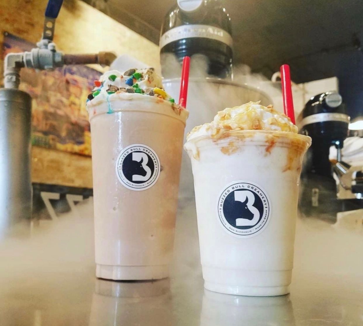 Considerably different than traditional ice cream making methods, the liquid nitrogen creates a noticeably smoother texture the moment the ice cream and nitro milkshake hit your taste buds. From 32 flavors, 20 mix-ins, and plenty of liquor options, they offer fully customized ice creams and nitro milkshakes. The buzzed flavors start at 5% ABV and adults can choose to upgrade their liquor. Some popular flavors include Honey Pecan [honey ice cream or milkshake, pecans, whipped cream with suggested buzz: bourbon], Death By Chocolate [chocolate ice cream or milkshake, brownie bites, chocolate chips, chocolate sauce on top with suggested buzz: chocolate vodka], Tiger Stripes [chocolate peanut butter ice cream or milkshake, peanut butter cups, peanut butter sauce on top with suggested buzz: spiced rum], and Dreamsicle [orange cake batter ice cream or milkshake, waffle cone pieces, whipped cream with suggested buzz: orange vodka].