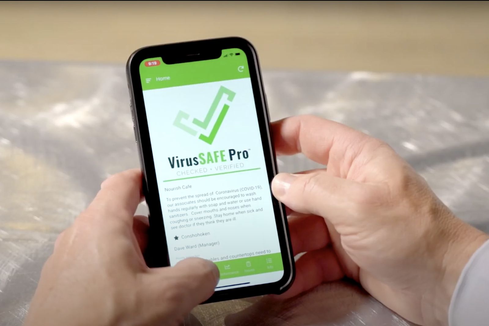 VirusSAFE Pro is a user-friendly software that closes the information gap in the workplace by providing health and safety checklists and reminders to employee mobile phones in a timely manner. An easy-to-read dashboard provides managers verification in real-time that employees are following and performing all mandated measures and protocols. VirusSAFE Pro standardizes and validates compliance with up to date guidelines from OSHA, CDC and NIH. Customers can be confident that their wellness is a top priority when they see a VirusSAFE Pro Check Mark decal in the window of a business.