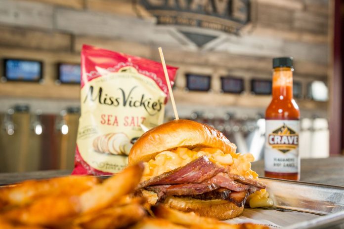 (RestaurantNews.com) Crave Hot Dogs and BBQ is a fast-casual restaurant featuring BBQ, Brats, Hot Dogs and self-serve beer. Tons of local craft beers and wines draw an audience. The interior has a modern yet rustic feel with a perfect ambiance. Customers instantly feel welcomed when they enter. The menu features classic bbq sandwiches and plates, but also fun dished like BBQ tacos, trifecta sliders and more. The hot dogs are 100% all beef and the brats, hot/ mild sausages are customer favorites. The restaurants are also kid friendly establishments having games available such as cornhole, giant connect four and more. The patios allow customers to dine inside the restaurant or outside while enjoying the weather. Crave also hosts weekly events such as Kids Eat Free on Wednesday’s, $2 Tuesdays and more.