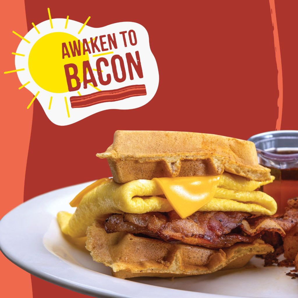 Spartanburg, SC (RestaurantNews.com) As its restaurants return to full-service (operating within recommended safety guidelines), Eggs Up Grill is ready to welcome back its neighbors with a new lineup of bacon dishes guaranteed to make guests smile. The new Awaken to Bacon promotion starts June 18 in all 43 locations. It features four all-new, limited-time dishes bursting with bacon – from cooking freshly chopped bacon pieces into fluffy buttermilk pancakes to turning waffles into buns for a new twist on a Bacon, Egg & Cheese sandwich.