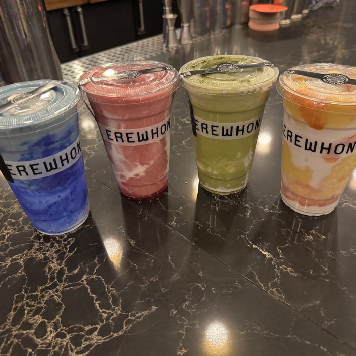 Since I first looked at the State of the Smoothie in New York in 2024, I’ve seen ever-more Erewhon dupes entering this city’s ecosystem. They’re easily identified by the contrasting streaks of vegan cream and fruit lining the cups at East Village Organic, Oases, and plenty more. But then this fall, word arrived that at last Erewhon itself would open in New York — or at least an Erewhon bar inside Kith Ivy, a new far West Village sports club with a $36,000 membership fee. But Coconut Clouds are Coconut Clouds no matter where they get made. You don’t need to be a member to get one of these smoothies delivered (via Uber Eats and Postmates), but you do need to be within the delivery zone, which, on the first day, is within one mile of the Kith club.