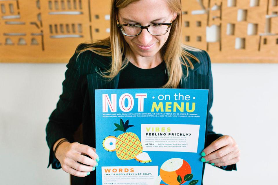 Wade began to develop the concept for Not on the Menu five years ago, when her female staff members requested a meeting regarding harassment they had experienced by customers. “At the time, what was happening was not that no one was reporting it,” Wade says, “but that it actually wasn’t being taken seriously [by managers].”