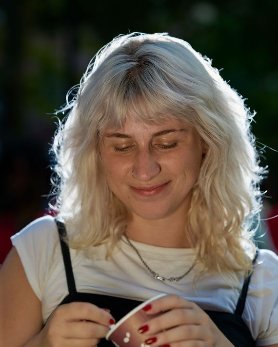 The stew thing is Perpetual Stew: a slow cooker that is endlessly replenished, kept over heat, and offered to anybody who wants some. Rauwerda is not a stew-maker by trade, but she has taken on the project of organizing weekly stew meet-ups for the next few months — or as long as people keep showing up. In the park, she keeps the stew hooked to a generator, gradually adding in ingredients from a communal pile. Over the course of the past month, the Crock-Pot has undergone various phases, starting off as a humble mix of vegetable stock, potatoes, leeks, and spices. By the time I tried some, it’s mostly cumin-y water, slightly raw onions, and beans. But, as Rauwerda eventually tells me, “It’s not really about the stew.”
