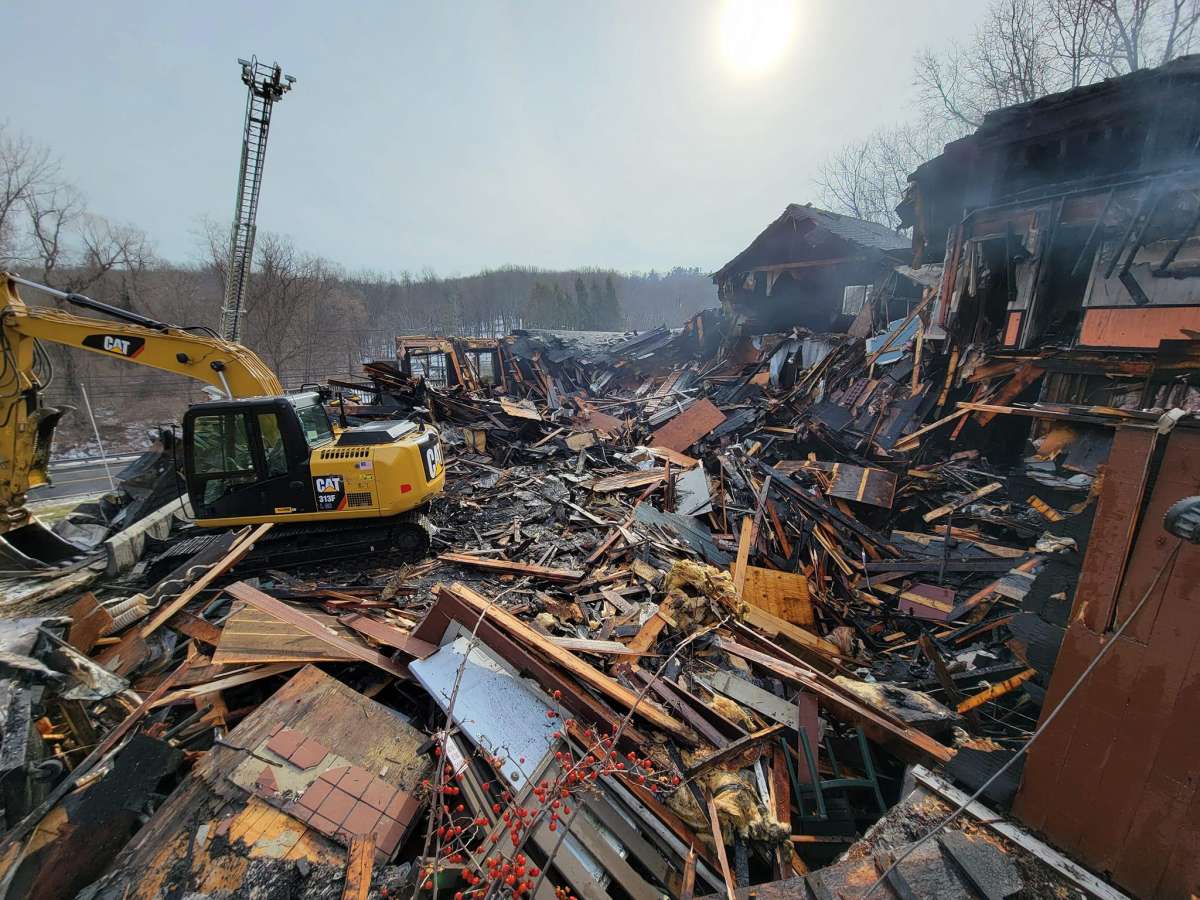 At one point, an excavator was called to help put the fire out, according to Hawleyville Volunteer Fire Company.