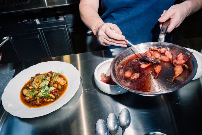 In the time since, Bloomfield cooked at a resort in Connecticut; at a farm she co-owns in Cornwall, England; and at her house upstate. Ahead of Sailor’s opening, she won’t share much — about the past, what she’s been up to, or reportedly getting sober in 2019 — and instead talks only about her food. She’s planning a recipe for herb-roasted chicken she has spent years perfecting and mussels that are, she says, “simple but quite juicy with lots of bright, punchy flavors.” Then there’s pork shoulder with vinegar. Veal sweetbreads with lemon, capers, and parsley. Pâté en croûte. “The only heady thing on the menu,” Bloomfield says, “are some poached radishes cooked in lambic beer, mixed with a little gastrique, and draped with a bit of lardo.”