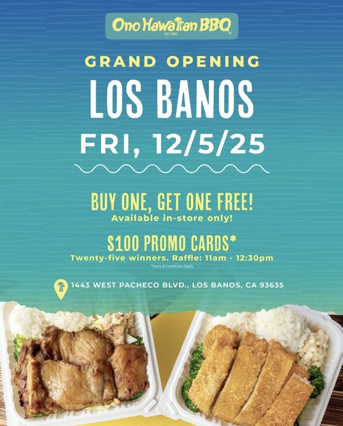 With over 120 locations across California and Arizona, Ono Hawaiian BBQ continues to expand its presence in Central California. The brand is known for its fresh made-to-order proteins, house-made sauces, and dedication to quality. The Los Banos opening is another step in bringing the flavor of the islands – and the “Aloha” spirit – to communities across the region.