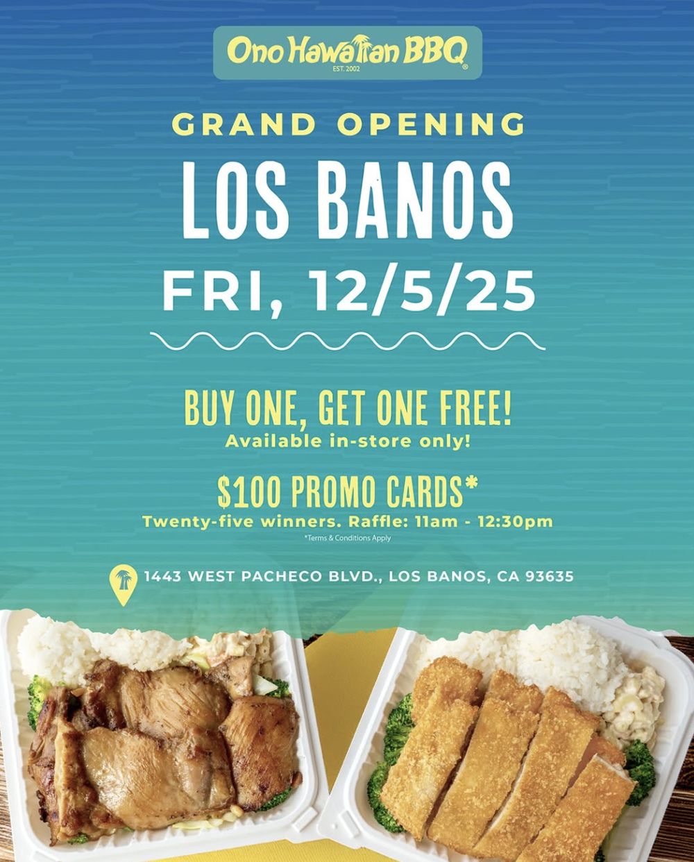 Ono Hawaiian BBQ is opening its newest location in Los Banos, CA