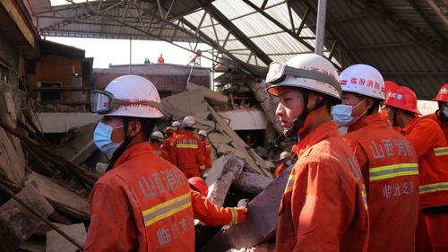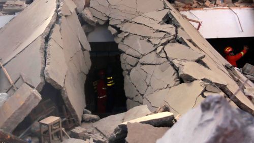 Video posted on social media by state broadcaster China Central Television showed them hefting heavy pieces of concrete. At least once, the remaining frame of the building shook but didn’t fall.