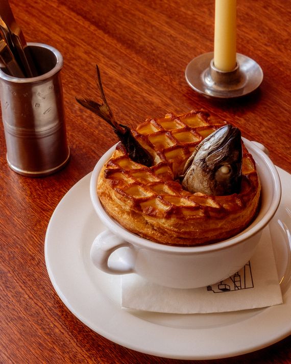 One menu item that will likely not be familiar to most New Yorkers is stargazy pie, a savory seafood pastry that hails from the small coastal town of Mousehole, Cornwall. The dish was first created to honor a legendary 16th-century catch that lifted the town out of famine right before Christmastime. Today, it’s served on Tom Bawcock’s Eve, a.k.a. December 23, and usually assembled with seven types of fish peering out of a suet crust, or at least septet of pilchards — sardines — that look like they’re leaping out of the water. Dean’s Stargazy will be filled with local seafood like Boston mackerel, cod, and hake, with boiled potatoes, cider, and a tiny bit of saffron. Shadbolt points out, “It’s not a carbon copy, it’s not a religious ode, it’s an inspiration, and a challenge to think about how to make it feel visually appealing.” Dean’s can make only ten per day, but wary diners won’t have to worry about too many fish eyes gazing up at the ceiling: Shadbolt’s recipe allows for only one fish head to poke out the top.