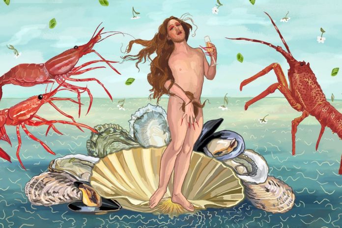 Steak Diane and her shellfish subjects in her underwater queendom. Illustration: Margalit Cutler