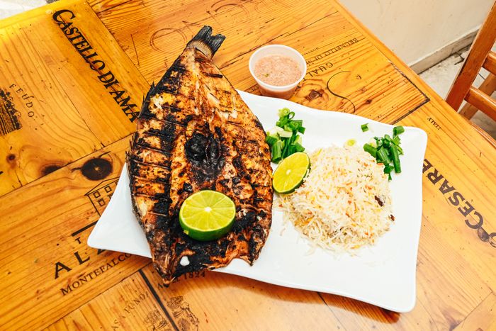 Shawati Aden, Fadhel Alesayi’s restaurant, is next door to Buun. On a recent night, around 8 p.m., the small restaurant was filled with a few tables of young men who all seemed to know Alesayi. Shawati Aden is his first restaurant, but he’s had a lifelong interest in cooking. As a teenager growing up in and around Dearborn, Michigan, he says he worked in an Italian restaurant and later learned how to cook Lebanese, American, and Greek food. “I’m a cook,” he says proudly. At Shawati Aden, for the rice in his sayadieh, a fish pilaf which has its origins in Lebanon, Alesayi supplements the usual smoky-sweet caramelized onions with two kinds of raisins and strips of pepper buried beneath the grains. Bites alternate between tangy and spicy, sweet and savory.
