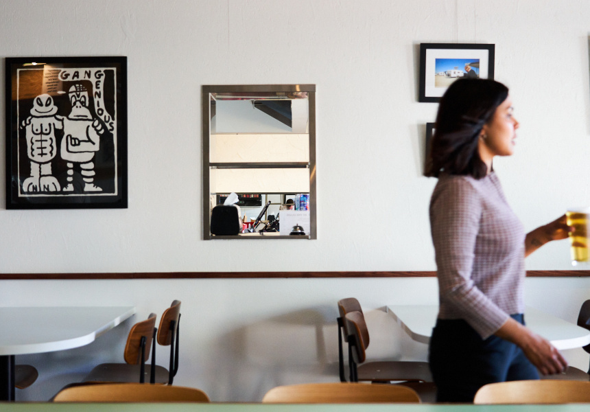 The other point of difference, naturally, is the ability to enjoy said drinks with Hoodburger’s suite of burgers and sandwiches, similar to the arrangement between Flipside and neighbouring bars Mrs Brown and Albert’s. While diners need to order food from the restaurant, staff will pass it to the bar expansion via a neat serving window that’s been installed between the two spaces. (The idea, says Shaw, came from a dive bar in Toronto that allowed burgers from a neighbouring A&W to be delivered to eaters).