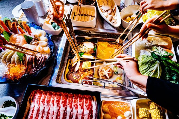 A meal at Haidilao in Flushing can involve four broths and dozens of ingredients. Photo: Janice Chung