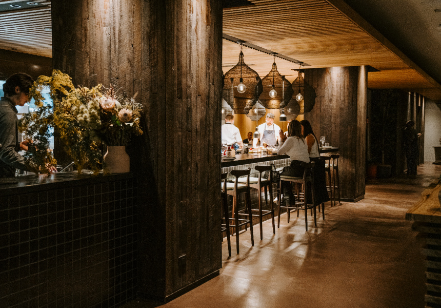 Move through the restaurant and you’ll find a centrepiece interactive ingredients table – hand-carved from a single piece of reclaimed eucalyptus obliqua – where you can touch and smell the Victorian ingredients the kitchen is featuring at any given time.