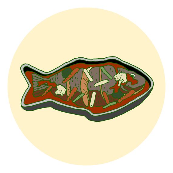The regional Thai menu features whole branzino in a spicy and sour curry of shrimp paste, chile, and tamarind. It’s served in a palatial setting inspired by the Wat Arun temple in Bangkok.