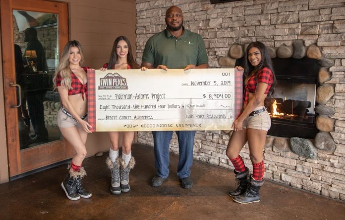 Dallas, TX (RestaurantNews.com) Throughout October, Twin Peaks Restaurants partnered with the Fairman Adams Project – a not-for-profit organization founded by former Dallas Cowboys and Pittsburgh Steelers offensive tackle Flozell Adams in memory of his late mother, Rachel Fairman – to raise funds in support of Breast Cancer Awareness Month.