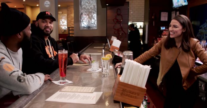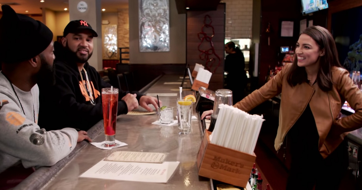 They decide to put AOC’s skills as a former bartender to the test at Step In, which gives Desus a chance to ask AOC how she feels about frequent comments that she should “go back to bartending.”
