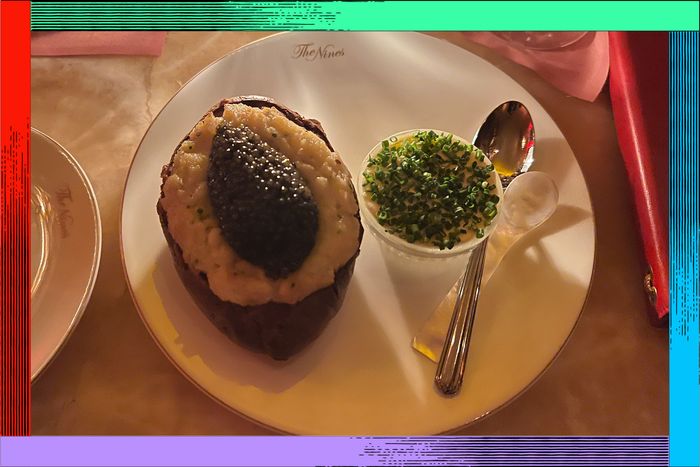 The piano player was in the middle of a rendition of Elliott Smith’s “Waltz #2 (XO)” and I was halfway through a Cosmo when someone set down a plate of the house china with my birthday potato, its flesh exhumed and enriched with lots of dairy before being loaded back into its skin, a quenelle of black caviar on full display in the center. I had no doubt I was getting every gram of the 30 promised on the menu; in fact, I wondered if any one person should eat that much caviar at all. But then I grabbed the mother-of-pearl spoon and dug in.