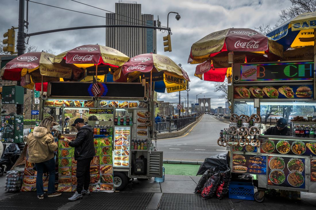 Street vendors by the Brooklyn Bridge. Photo: Anthony Devlin/Getty Images